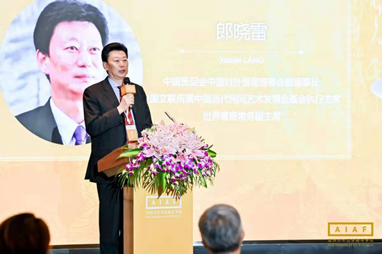 中國貿促會中國對外貿易理事會副理事長、中國文聯所屬中國當代民間藝術發(fā)展金基會執(zhí)行主席郎曉雷致辭