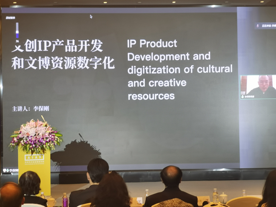 中國藝術產業(yè)園聯盟執(zhí)行主席、觀唐文化股份董事長李保剛主題演講 :“文創(chuàng)IP產品開發(fā)和文博資源數字化”。