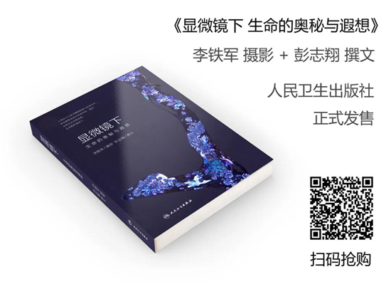 就在去年,李鐵軍攝影、彭志翔撰文,兩人聯(lián)袂出版了圖書(shū)《顯微鏡下——生命的奧秘與遐想》(詳見(jiàn)文后鏈接)。在這篇千字短文中,彭教授用他靈動(dòng)飛揚(yáng)的文字,為我們?cè)忈屃死铊F軍顯微攝影的超然意趣。