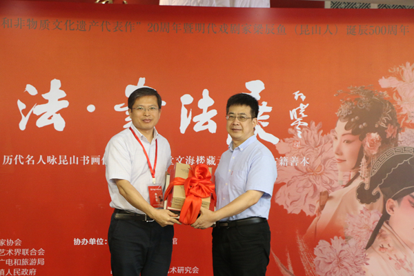 昆山市文聯(lián)主席馮惠清代表昆山市向中國(guó)藝術(shù)報(bào)社贈(zèng)書(shū)