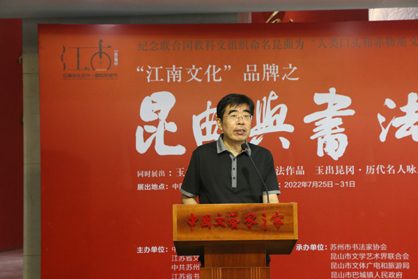 康偉表示,在昆曲與書(shū)法的互動(dòng)之中,本次展覽彰顯了昆山文化之厚重,撲面而來(lái)的是文化之美、藝術(shù)之味、江南之韻、人文之思。這次展覽正是一次昆曲與書(shū)法的雅集。習(xí)近平總書(shū)記強(qiáng)調(diào),要推動(dòng)中華優(yōu)秀傳統(tǒng)文化創(chuàng)造性轉(zhuǎn)化、創(chuàng)新性發(fā)展。本次展覽就是貫徹習(xí)近平總書(shū)記這一重要指示精神的藝術(shù)實(shí)踐。中國(guó)藝術(shù)報(bào)作為中國(guó)文聯(lián)主管主辦的重要文藝專業(yè)媒體,把為藝術(shù)家提供交流平臺(tái)、推動(dòng)文藝創(chuàng)作作為自己服務(wù)文聯(lián)工作和文藝事業(yè)大局的重要一環(huán)。我們非常愿意將更多藝術(shù)家創(chuàng)新創(chuàng)造的優(yōu)秀藝術(shù)成果展現(xiàn)給人民群眾,向黨的二十大獻(xiàn)禮。