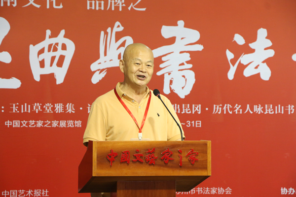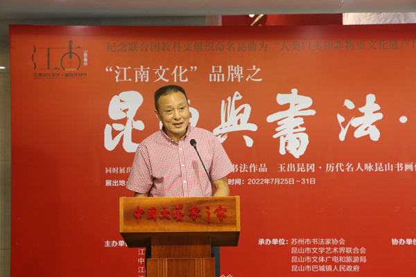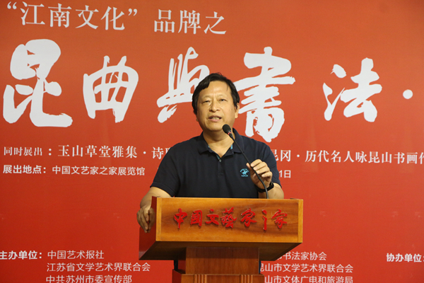 7月26日,由中國(guó)藝術(shù)報(bào)社、江蘇省文聯(lián)、蘇州市委宣傳部、江蘇省書(shū)協(xié)、蘇州市文聯(lián)、蘇州市文廣旅局、昆山市人民政府主辦的昆曲與書(shū)法·書(shū)法展在北京中國(guó)文藝家之家展覽館開(kāi)幕。本次展覽分為“玉出昆岡——歷代名人詠昆山”“玉山雅集·詩(shī)聯(lián)作品”“昆曲與書(shū)法”三個(gè)部分,共展出霍國(guó)強(qiáng)等著名書(shū)畫家創(chuàng)作的作品近200幅。這些作品以歷代名人吟詠昆山的詩(shī)歌、古代三大雅集之一的“玉山雅集”以及昆曲為主線,采用書(shū)法和繪畫創(chuàng)作相結(jié)合的手法,展現(xiàn)昆山之美、昆曲之美、傳統(tǒng)之美。