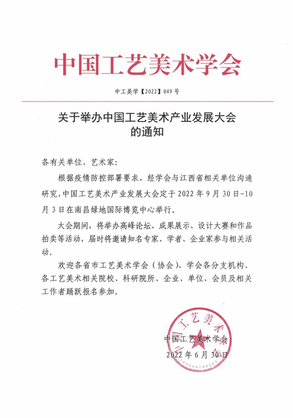 關于舉辦中國工藝美術產業(yè)發(fā)展大會的通知
