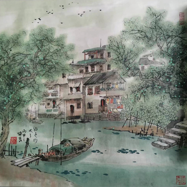 綠色的水鄉(xiāng)(國畫) 胡煥良