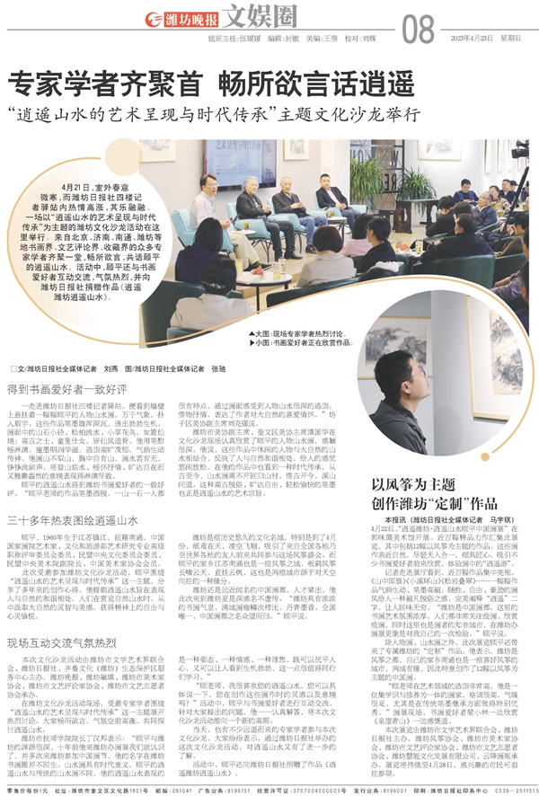 當(dāng)天,也有不少遠(yuǎn)道而來的專家學(xué)者參與本次文化沙龍,大家紛紛表示,通過濰坊日?qǐng)?bào)社舉辦的這次文化沙龍活動(dòng),對(duì)逍遙山水又有了進(jìn)一步的了解。