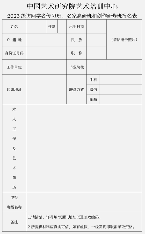 四、 優(yōu)秀學員有資格被邀請參加中國藝術研究院藝術培訓中心的相關學術交流活動等。