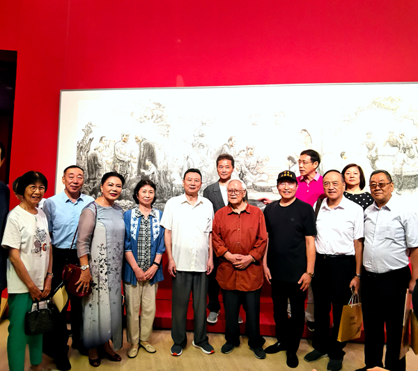 策展人王茜女士透露,“脊梁——趙志田中國(guó)畫作品展”,旨在呈現(xiàn)畫家在藝術(shù)創(chuàng)造中勇于擔(dān)當(dāng)、敢為人先的守正創(chuàng)新和對(duì)民族精神的堅(jiān)守,中國(guó)美術(shù)館中心展廳展覽體現(xiàn)著中國(guó)畫家群體鏈接藝術(shù)史文脈與獨(dú)標(biāo)一格的學(xué)術(shù)成果匯演。本次畫展的意義還在于大型主題創(chuàng)作中的史詩(shī)性文獻(xiàn),畫家代表作《大慶工人無(wú)冬天》、《烽火太行》、《百聽不厭是鄉(xiāng)音》等在藝術(shù)史脈絡(luò)中展露的革命理想高于天的時(shí)代精神與革命樂觀主義精神依然在不斷迸發(fā)力量,為了這種精神的傳遞,畫展期間組委會(huì)特別邀請(qǐng)周恩來(lái)總理侄子周秉和先生,開國(guó)大將張?jiān)埔輰④娭畬O張曉健先生,開國(guó)上將楊至誠(chéng)將軍之子楊珠江先生,開國(guó)上將李天佑將軍之子李亞濱先生及夫人饒立群女士,開國(guó)上將鄧華將軍之女鄧英女士,開國(guó)將軍邊疆之子邊小兵先生等嘉賓來(lái)到開幕式。多樣性的展覽、交流、研討、互動(dòng)創(chuàng)造性地達(dá)到了一種經(jīng)典藝術(shù)走進(jìn)社會(huì)大眾生活的時(shí)代洪流與能量?诒鄠鞯乃囆g(shù)經(jīng)典一定是持久的,散發(fā)著人性的溫暖和精神力量的。這也是“脊梁——趙志田中國(guó)畫作品展”帶給全國(guó)人民不尋常藝術(shù)感受的精神特質(zhì)——不忘初心、砥礪奮進(jìn)。