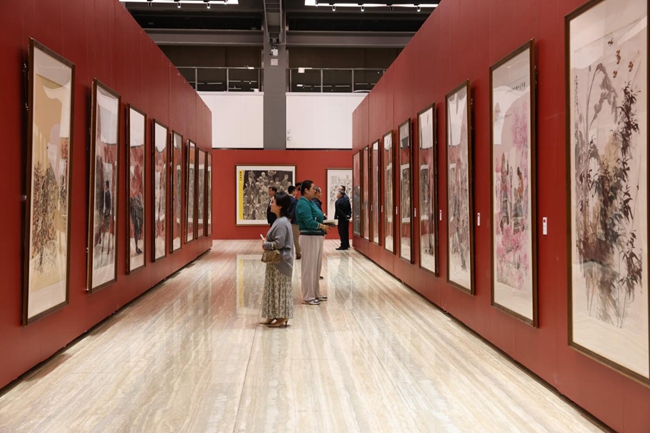孔維克在致辭中介紹,為著力提升展覽總體水平,展覽籌備期間還舉辦了主題創(chuàng)作草圖觀摩指導(dǎo)活動。此次展覽共征集作品1500余件,經(jīng)過專業(yè)評審后最終精選出約270件優(yōu)秀作品參展,涵蓋中國畫、油畫、書法、篆刻、瓷板畫等多個藝術(shù)門類。這些作品集中體現(xiàn)了多黨合作史和民革發(fā)展史,弘揚了中華優(yōu)秀傳統(tǒng)文化的價值理念和時代精神,從多角度多層面描繪了中國式現(xiàn)代化的恢宏氣象,謳歌了中國共產(chǎn)黨帶領(lǐng)中國人民開辟中華民族偉大復(fù)興之路的光輝歷程。