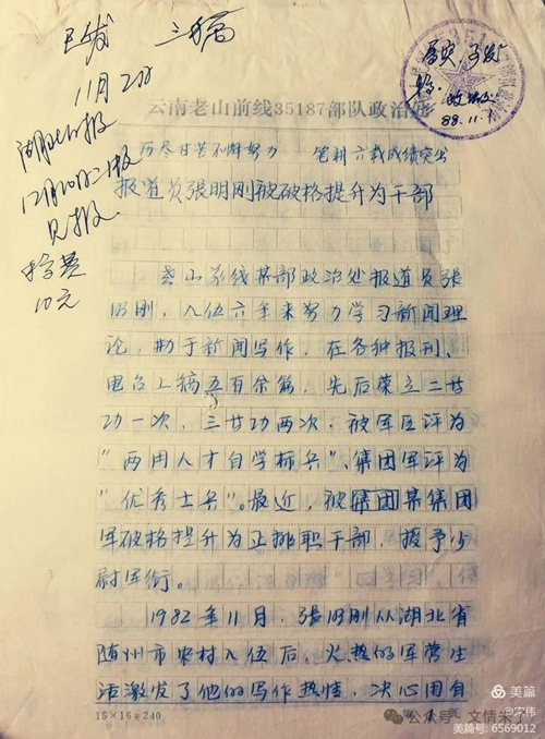 文章來(lái)源于2022年10月29日美篇“報(bào)道員張明剛被破格提升為干部”。