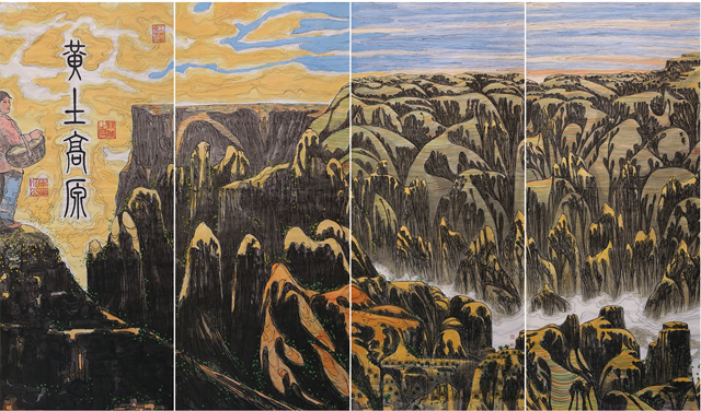 我們順著絲綢之路走到黃土高原面前,我們看到的是世界上最大的黃土塬景觀,塬的四周是神雕鬼塑的溝壑、梁岇和崾峴,巨大的塬猶如起伏的黃河波濤拱托著。數(shù)以千萬(wàn)計(jì)的支溝在頻繁的洪水沖刷下不斷地蠶蝕黃土塬,各溝頭像無(wú)數(shù)魔爪伸向黃土塬。黃土塬卻像母親那樣敞開(kāi)胸懷把自己身上最豐腴的肉一塊一塊地割下來(lái),順著洪水流送到中原大地,輸送進(jìn)大海,建造起一片又一片孕育中華文化的沃土,自己則留下了溝壑縱橫、千瘡百孔的軀體。我們?cè)诋?huà)前深深感悟到,這,就是母親的大地胸懷,是萬(wàn)古傳唱的中華精神。