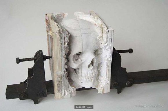 骷髏頭雕塑書。