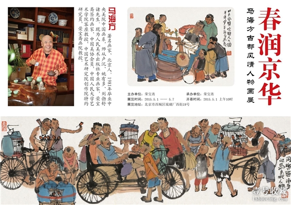 由榮寶齋主辦的“春潤(rùn)京華——馬海方古都風(fēng)情人物畫展”謹(jǐn)定于2015年5月1日至5月7日在北京榮寶齋(東齋)舉行。本次榮寶齋展覽將展出馬海方先生近作百余件,這是馬海方先生連續(xù)五年在榮寶齋舉辦個(gè)人展覽,展覽首日上午9:00——10:00舉行新畫冊(cè)簽售活動(dòng)。