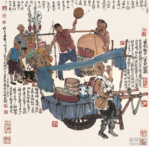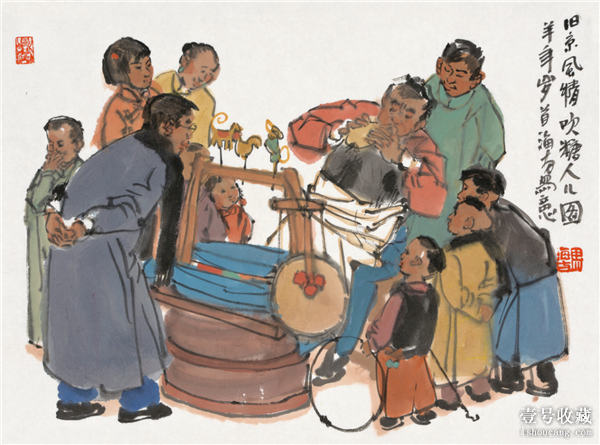 《舊京風(fēng)情吹糖人圖》