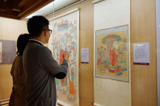 觀眾參觀張大千臨摹敦煌壁畫作品展(攝影 宋偉)