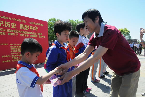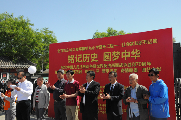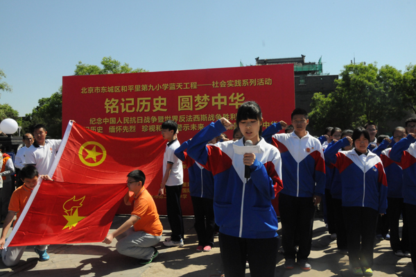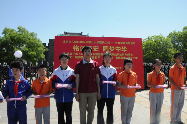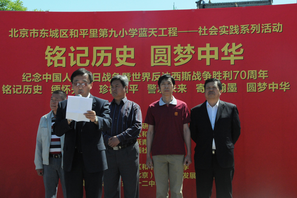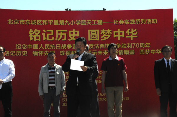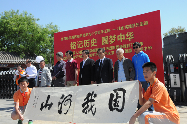 5月4上午10時(shí)許,由中華炎黃文化研究會(huì)硯文化專業(yè)委員會(huì)、北京市東城區(qū)和平里第九小學(xué)、北京和九飛躍青少年俱樂部、燕京書畫社、鑒石雜志社主辦;北京市東城區(qū)和平里第九小學(xué)、鑒石雜志社承辦,北京市第二十二中學(xué)協(xié)辦的“紀(jì)念中國(guó)人民抗日戰(zhàn)爭(zhēng)暨反法西斯戰(zhàn)爭(zhēng)勝利七十周年活動(dòng)在豐臺(tái)區(qū)盧溝橋舉行。