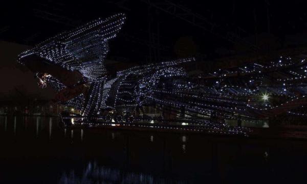 中國藝術家徐冰作品《鳳凰》在晚間亮燈