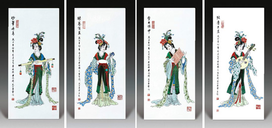 中國(guó)工藝美術(shù)大師戴榮華 古彩《四季美人圖》瓷板(現(xiàn)藏于藏樂(lè)閣博物館)