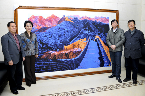 在中華炎黃文化研究會硯文化專業(yè)委員會、中華硯文化發(fā)展聯合會組織下,由中華光影平面油畫藝術學會會長、中華硯文化發(fā)展聯合會副會長、光影平面油畫創(chuàng)始人于江先生精心創(chuàng)作的巨幅《金山嶺》贈送給北京市文資辦,以感謝北京市文資辦對弘揚中華硯文化事業(yè)及光影平面油畫藝術的大力支持。劉紅軍會長等領導在北京市文資辦黨委書記張慧光的陪同下,參觀了北京文化創(chuàng)意產業(yè)展示中心,并在展示中心舉行交流座談會,共同商議未來合作事項。