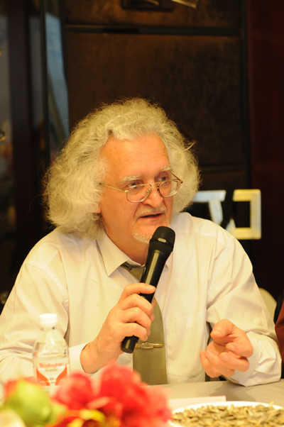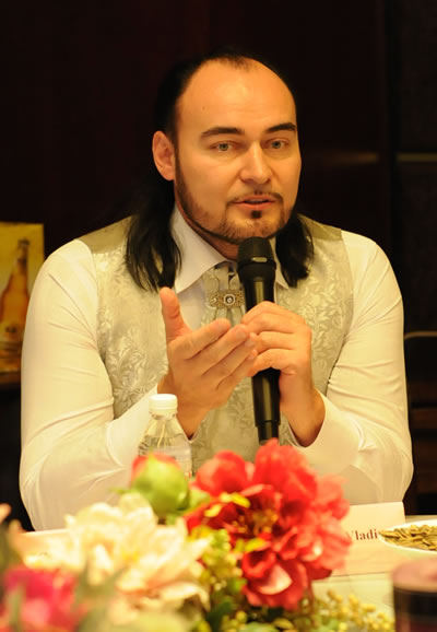 亞歷山大▪洛維奇▪弗拉基米爾在座談會(huì)上說(shuō)道:我很高興今天晚上與我的中國(guó)朋友見(jiàn)面。我認(rèn)為每一個(gè)歌手與畫(huà)家在藝術(shù)上都是相通的。我感覺(jué)我是一個(gè)非常幸福的人,與中國(guó)朋友見(jiàn)面,也代表我們白俄羅斯在這里與大家暢談文化藝術(shù)。三百年之前歐洲有一個(gè)著名歌手有很多作品,在他演出的時(shí)候可以一邊欣賞作品,一邊聽(tīng)歌,甚是美好。中國(guó)文化水平、藝術(shù)水平對(duì)白俄羅斯很大影響,我希望能夠與中國(guó)的朋友更多的合作。謝謝大家。
