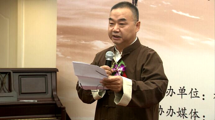 中國華夏藝術(shù)家協(xié)會常務(wù)副主席、書畫展作者陶洪君致歡迎詞