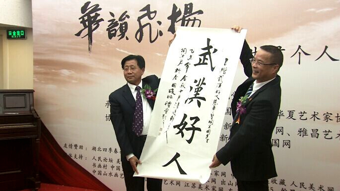 在開幕式現(xiàn)場,陶洪君特意為湖北省“慈善之星“、“武漢好人”題寫了“武漢好人”四個大字。