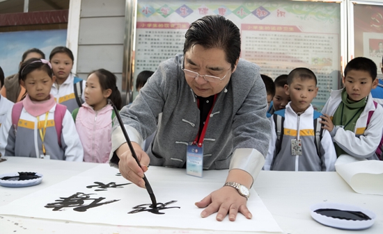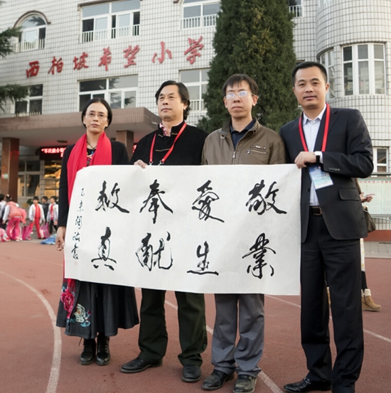 活動期間,活動組委會不僅組織知名書畫家一行實地參觀了西柏坡紀(jì)念館、七屆二中全會會址等中共中央舊址等紅色景點,還來到西柏坡希望小學(xué)開展了特色文化援建活動,為學(xué)校老師和學(xué)生書寫校風(fēng)、校訓(xùn)等,還為學(xué)校捐贈了籃球、書包、文具盒、鉛筆、橡皮等學(xué)習(xí)和體育用品。老師和同學(xué)們被這種獨特而新奇的援建方式所吸引,并與書畫家們合影留念。
