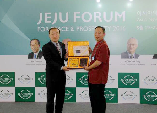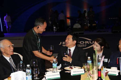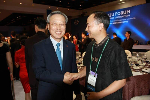 制硯大師王安平與出席濟(jì)州論壇的國(guó)際政要親切交流