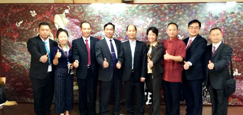 后妹翡翠董事長朱紅光與出席濟(jì)州論壇的肇慶市政府領(lǐng)導(dǎo)蔡大經(jīng)等一行合影紀(jì)念