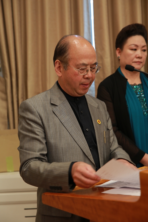 著名陶藝家華奎代表中方藝術家在逸品神工藝術精品展開幕上致辭