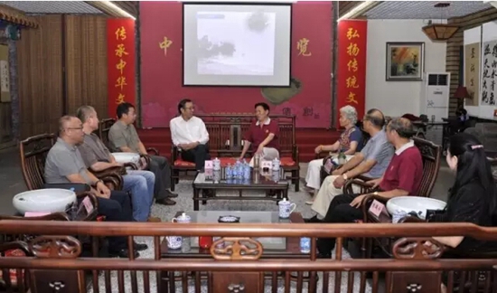 9月1日下午,中國(guó)藝術(shù)研究院院長(zhǎng)、中國(guó)非物質(zhì)文化遺產(chǎn)保護(hù)中心主任連輯,中國(guó)藝術(shù)研究院教授邱春林、王亞雄,文化藝術(shù)出版社常務(wù)副社長(zhǎng)楊斌等一行,專程到北京王四營(yíng)中華硯文化展覽館進(jìn)行調(diào)研考察。中華炎黃文化研究會(huì)硯文化聯(lián)合會(huì)名譽(yù)會(huì)長(zhǎng)劉紅軍,名譽(yù)副會(huì)長(zhǎng)許世寬,常務(wù)副會(huì)長(zhǎng)、首席專家張淑芬,常務(wù)副會(huì)長(zhǎng)張國(guó)興、金彤,副會(huì)長(zhǎng)于江、火來(lái)勝、吳笠谷、葛新國(guó)等陪同考察并進(jìn)行了座談。連輯院長(zhǎng)對(duì)弘揚(yáng)硯文化事業(yè)取得的成績(jī)表示敬佩和贊賞,雙方就共同加強(qiáng)弘揚(yáng)中華硯文化事業(yè)發(fā)展達(dá)成了廣泛共識(shí)。
