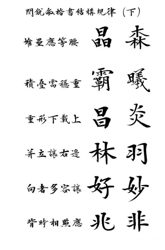 4. 平衡。左右形態(tài)不同,但是通過(guò)筆畫輕重的運(yùn)用,以求達(dá)到相同的份量。