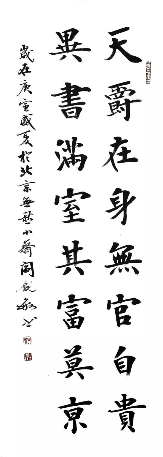 因?yàn)樗鼞覓煊趶d堂正中央而得名,中堂的寬度與長(zhǎng)度比例一般為一比二。常見(jiàn)的有長(zhǎng)四尺、五尺、六尺等整張宣紙寫成。內(nèi)容可以寫長(zhǎng)詩(shī)或短文,或只寫幾個(gè)大字,甚至只寫一個(gè)大字。