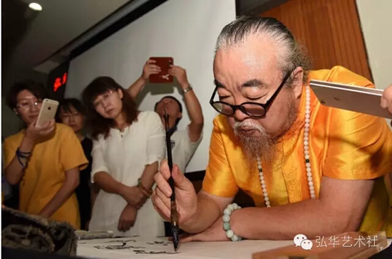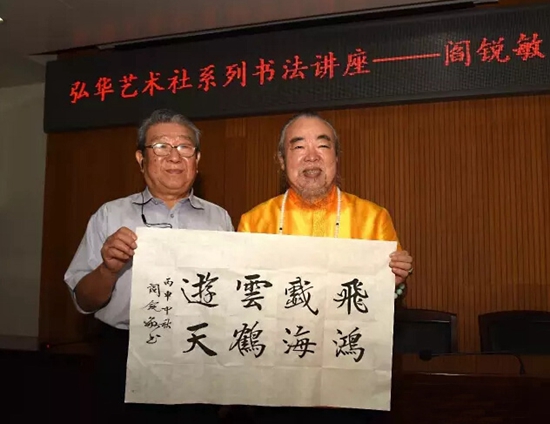 最后,閆老師題字“飛鴻戲海,云鶴游天”,并與會(huì)員們合影留念。