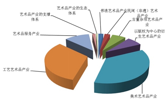 報告顯示,中國藝術(shù)品產(chǎn)業(yè)在發(fā)展過程中,顯現(xiàn)出五個趨勢:一是中國藝術(shù)品產(chǎn)業(yè)規(guī)模發(fā)展迅速;二是中國藝術(shù)品產(chǎn)業(yè)規(guī)模在整個文化產(chǎn)業(yè)發(fā)展的過程中,占有舉足輕重的地位;三是中國藝術(shù)品產(chǎn)業(yè)發(fā)展的聯(lián)動作用,表現(xiàn)在規(guī)模結(jié)構(gòu)上就是有了核心層、外圍層與輻射層的分布,三頭并進,相互促進,跨界融合,帶動中國藝術(shù)品產(chǎn)業(yè)規(guī)模的快速增長;四是在中國藝術(shù)品產(chǎn)業(yè)規(guī)模結(jié)構(gòu)中,美術(shù)藝術(shù)品產(chǎn)業(yè)及工藝藝術(shù)品產(chǎn)業(yè)是主導(dǎo),超過了整個中國藝術(shù)品產(chǎn)業(yè)規(guī)模的60%以上;藝術(shù)品服務(wù)產(chǎn)業(yè)、以版權(quán)為中心的藝術(shù)衍生品產(chǎn)業(yè),目前雖然所占的規(guī)模不是很大,但其成長發(fā)展的速度最為迅速;藝術(shù)品產(chǎn)業(yè)的支撐體系產(chǎn)業(yè)、民間(非遺)藝術(shù)品產(chǎn)業(yè)的規(guī)模也在迅速提升,成為中國藝術(shù)品產(chǎn)業(yè)發(fā)展過程中不可忽視的發(fā)展板塊;五是中國藝術(shù)品產(chǎn)業(yè)生態(tài)正在形成。由此可見,中國藝術(shù)品產(chǎn)業(yè)是當前文化產(chǎn)業(yè)與文化新經(jīng)濟發(fā)展過程中的一個亮點,總量持續(xù)快速增長,比重日益上升,在推動文化新經(jīng)濟發(fā)展、優(yōu)化文化產(chǎn)業(yè)結(jié)構(gòu)中發(fā)揮著越來越重要的作用,朝著推動文化產(chǎn)業(yè)成為國民經(jīng)濟支柱產(chǎn)業(yè)的方向發(fā)揮越來越重要的作用。