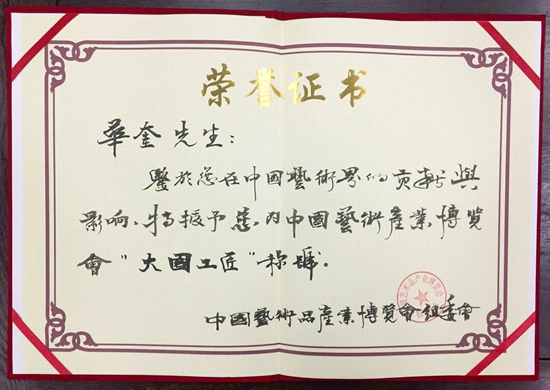 今年五月華奎先生曾以瓷藝大家的身份應(yīng)邀赴韓國參加了中韓非遺高峰論壇暨逸品神工精品展。他的陶瓷雕塑作品《勤勞智慧中國娃》由韓國國會永久收藏。同時有多件作品榮獲“逸品神工”獎。并以《中國陶瓷文化藝術(shù)的回顧與展望》為題作為學(xué)術(shù)交流發(fā)言。近年來,華奎先生在景德鎮(zhèn)對陶瓷藝術(shù)進(jìn)行了如癡如醉的探索創(chuàng)作,加深了對我國陶瓷文化藝術(shù)的認(rèn)識和情感。前段時間華奎先生在重慶開州和張家口武家莊同一些熱心陶瓷文化非物質(zhì)文化遺產(chǎn)的社會賢達(dá)一起,對當(dāng)?shù)貫l臨消亡和已經(jīng)廢棄的窯址進(jìn)行了實地考察。提出了一系列搶救方案。計劃首先在這兩個地方建立陶瓷文化藝術(shù)墻,陶瓷文化博物館和陶瓷藝術(shù)體驗館。決心把我國的陶瓷文化藝術(shù)進(jìn)一步發(fā)揚光大。同時擬定了一系列的研究創(chuàng)作計劃,準(zhǔn)備創(chuàng)作出更多更美的陶瓷藝術(shù)精品奉獻(xiàn)社會。
