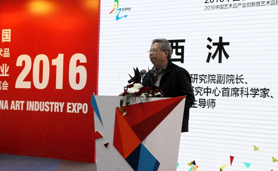 西沐先生在開(kāi)幕式上圍繞《立足研究與實(shí)踐前沿 推動(dòng)藝術(shù)品產(chǎn)業(yè)融合發(fā)展》發(fā)表了重要講話.