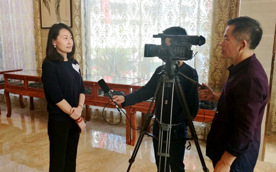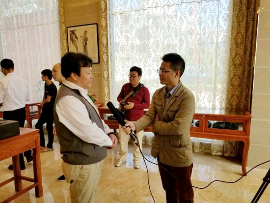 中華炎黃文化研究會(huì)硯文化聯(lián)合會(huì)常務(wù)副秘書(shū)長(zhǎng)兼外聯(lián)部部長(zhǎng)陰巍接受當(dāng)?shù)仉娨暸_(tái)采訪
