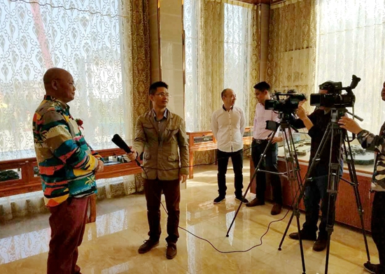 中國(guó)工藝美術(shù)大師、中國(guó)非物質(zhì)文化遺產(chǎn)代表性傳承人王祖?zhèn)ソ邮墚?dāng)?shù)仉娨暸_(tái)采訪