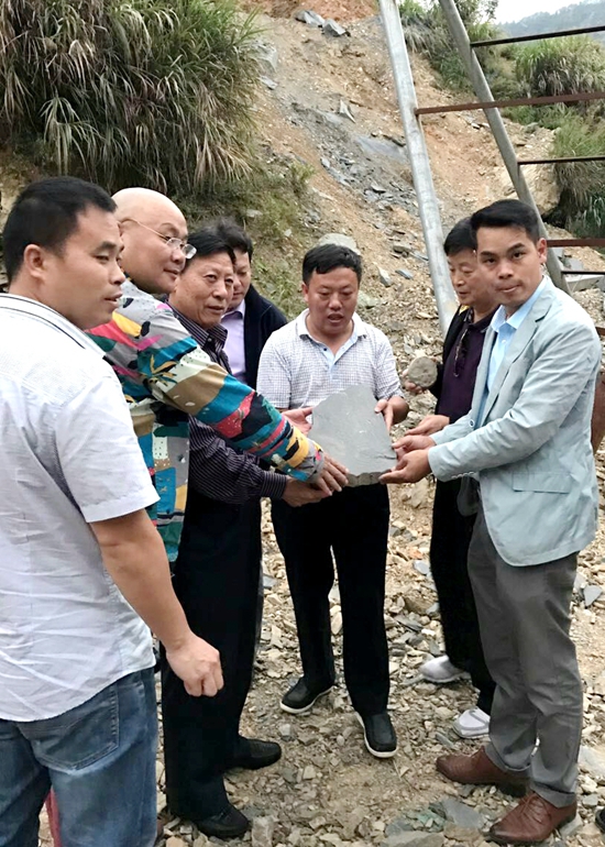 考察團(tuán)一行到玉山縣羅紋硯礦區(qū)實(shí)地調(diào)研與縣雕刻家協(xié)會(huì)廖芝軍交流