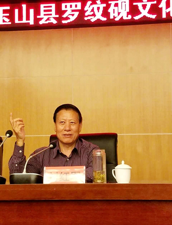 全國(guó)政協(xié)委員、中華炎黃文化研究會(huì)硯文化聯(lián)合會(huì)名譽(yù)會(huì)長(zhǎng)劉紅軍在玉山縣羅紋硯文化研討會(huì)上講話