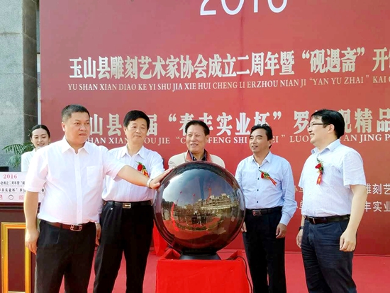 硯文化聯(lián)合會(huì)名譽(yù)會(huì)長(zhǎng)劉紅軍、執(zhí)行會(huì)長(zhǎng)唐本高、玉山縣縣長(zhǎng)徐樹(shù)斌、上饒市文聯(lián)主席張?zhí)煜脊餐_(kāi)啟活動(dòng)儀式