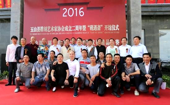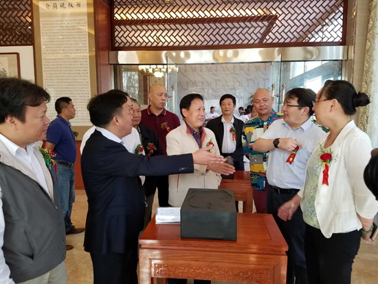 中華炎黃文化研究會(huì)硯文化聯(lián)合會(huì)名譽(yù)會(huì)長(zhǎng)劉紅軍和玉山縣委副書(shū)記、縣長(zhǎng)徐樹(shù)斌為“硯遇齋揭牌”