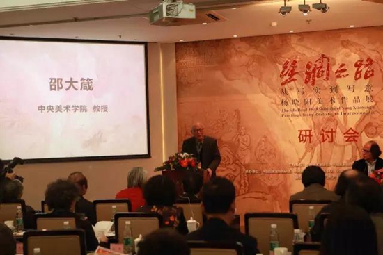 開幕式后,針對楊曉陽的藝術創(chuàng)作,中央美術學院教授邵大箴、中央美術學院院長范迪安、中國美術館研究館員劉曦林、中國藝術研究院美術研究所所長?苏\、中國藝術研究院研究員王鏞、人民美術出版社編審劉龍庭、中國藝術研究院研究員陳醉、中國美院教授任道斌、中國國家畫院研究員趙力忠、《美術》雜志主編尚輝、北京大學教授李松、華東師范大學藝術研究所所長阮榮春、中國藝術研究院美術研究所副所長鄭工、北京畫院理論部主任王志純、評論家鄧平祥、清華大學教授陳池瑜、中國人民大學教授牛宏寶、中國美術館研究館員徐虹、中國國家畫院美術研究院研究員張惠明、中國社科院研究員劉悅笛等美術理論家、美術家圍繞“大寫意”“絲綢之路”“知識分子藝術家”等關鍵詞展開了深入的討論。研討會由中國國家副院長張曉凌、中國國家畫院美術研究院常務副院長高天民主持。