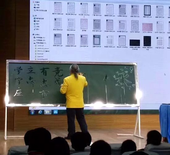 閆老師通過課前跟老師們的交流,了解到同學(xué)們學(xué)習(xí)書法的基本情況,對學(xué)校領(lǐng)導(dǎo)的行為表示肯定和贊賞,并發(fā)表了自己對書法的獨特見解。