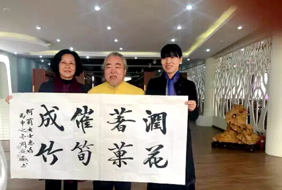課程結(jié)束之際,閆老師寄語實驗小學(xué)的師生:字如其人,好好寫字,好好做人!授課完畢,閆老師又揮毫潑墨——寫了“潤花著菓,催筍成竹”“沐育英才”等兩幅墨寶贈予校方,老師們齊呼好字好字!簡直是筆尖上的舞蹈!學(xué)校領(lǐng)導(dǎo)也對閆老師予以肯定,并頒發(fā)了“書法導(dǎo)師”的榮譽證。