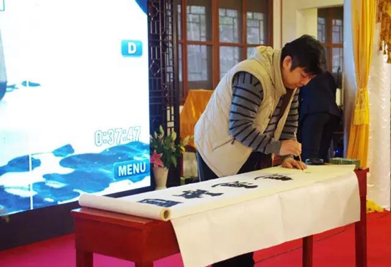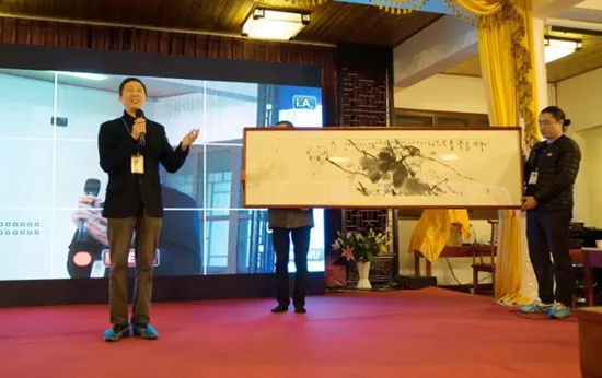 開幕儀式上的活動洋溢著濃濃的文化氛圍,王延鵬老師現(xiàn)場潑墨揮毫題字“圓融通達”,李正火老師帶來了自己傾心創(chuàng)作的畫作,這些書畫作品都作為禮物贈送給了多寶講寺。