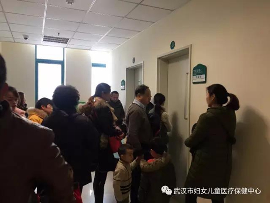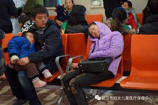 偌大的候診區(qū)坐滿了等候的家長和患兒