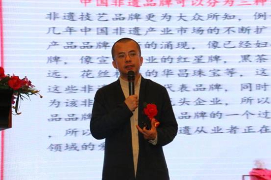 中國非物質(zhì)文化遺產(chǎn)戰(zhàn)略發(fā)展聯(lián)盟秘書長、中國非遺產(chǎn)業(yè)領(lǐng)軍人物華慶向與會代表重點(diǎn)介紹了中國非遺產(chǎn)業(yè)發(fā)展的最新特點(diǎn),并且全面闡述了非遺產(chǎn)業(yè)是“已初具產(chǎn)業(yè)規(guī)模,并在傳承老祖宗留下的核心技藝和核心內(nèi)涵基礎(chǔ)上,正不斷向高科技化、標(biāo)準(zhǔn)工業(yè)化、品牌化、龍頭化和移動互聯(lián)網(wǎng)及金融化邁進(jìn)的新興產(chǎn)業(yè)!”