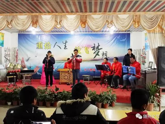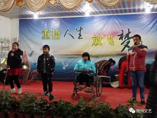 沒(méi)辦法,我只好被他拉著去看了曾都區(qū)愛(ài)心職業(yè)培訓(xùn)學(xué)校和隨縣博愛(ài)特殊教育學(xué)校,觀看了孩子們艱難的表演。是的,他們沒(méi)有正常孩子一樣健康的身體和在舞臺(tái)上精湛的技藝,但他們直面生活和人生的勇氣令人感動(dòng)。