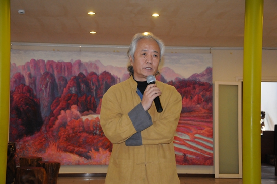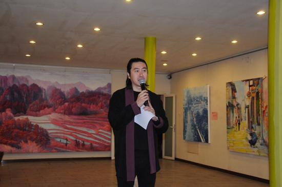 劉國柱先生得意弟子、著名青年歌手王鶴錚主持畫展開幕式